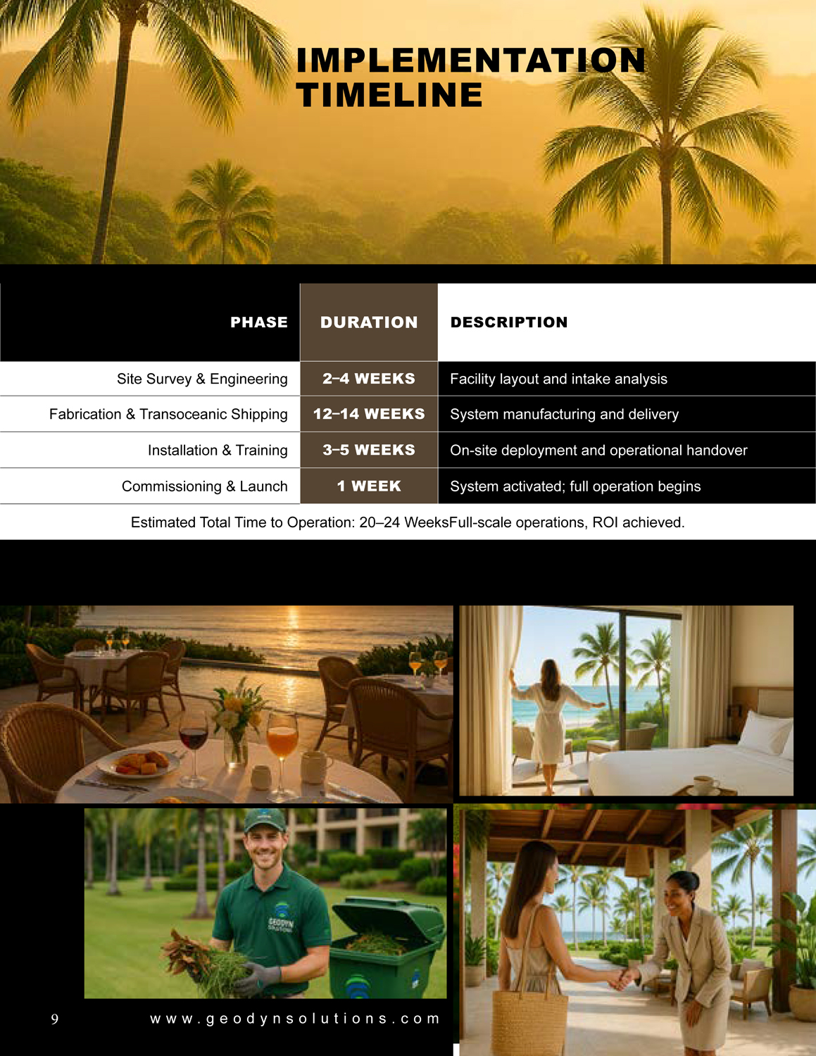 Fabrication & Transoceanic Shipping | 12–14 Weeks | System manufacturing and delivery |