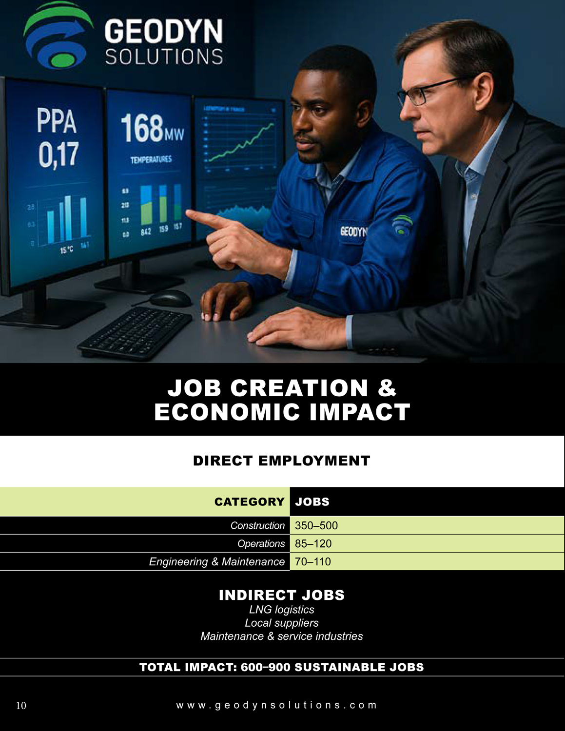 Total Impact: 600–900 sustainable jobs