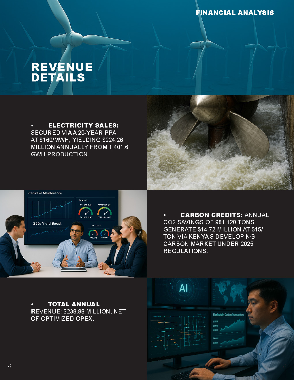 • Electricity Sales: Secured via a 20-year PPA at $160/MWh, yielding $224.26 million annually from 1,401.6 GWh production.