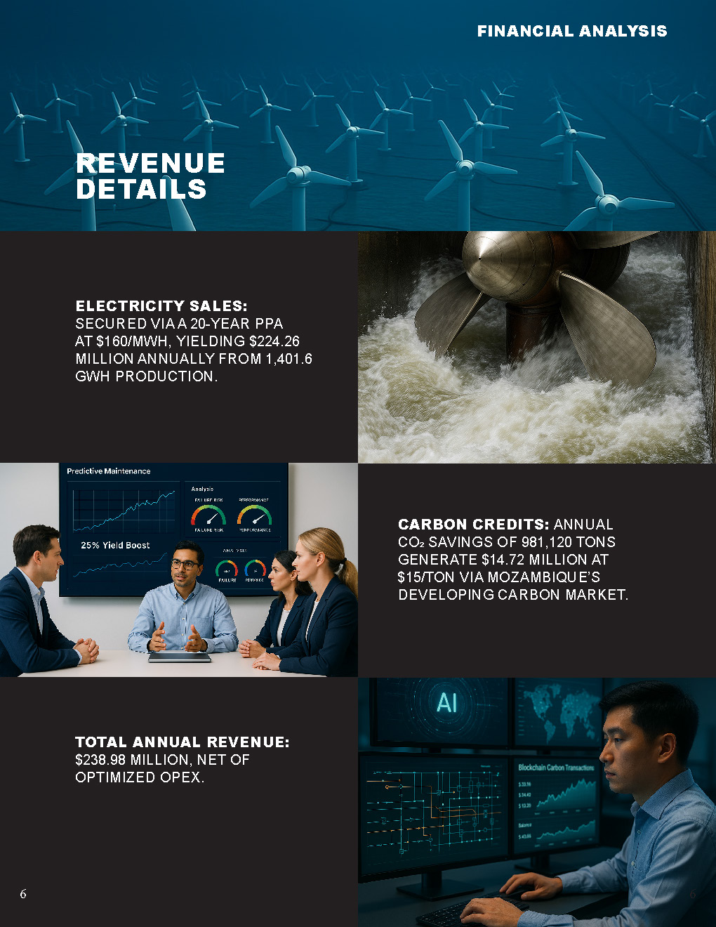 - Carbon Credits: Annual CO2 savings of 981,120 tons generate $14.72 million at $15/ton via Mozambique’s developing carbon market.