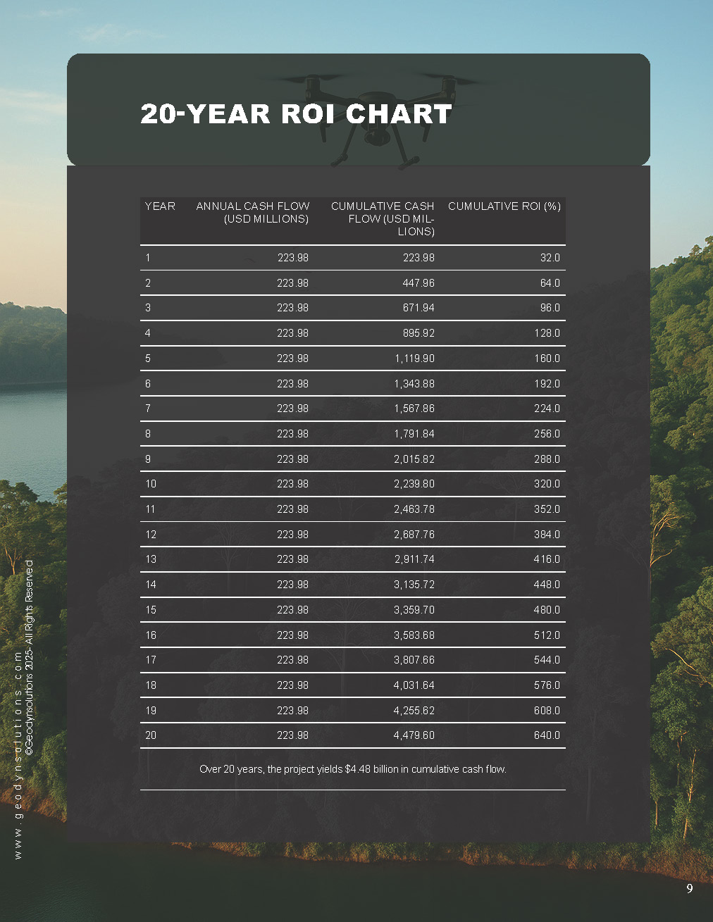 Over 20 years, the project yields $4.48 billion in cumulative cash flow.