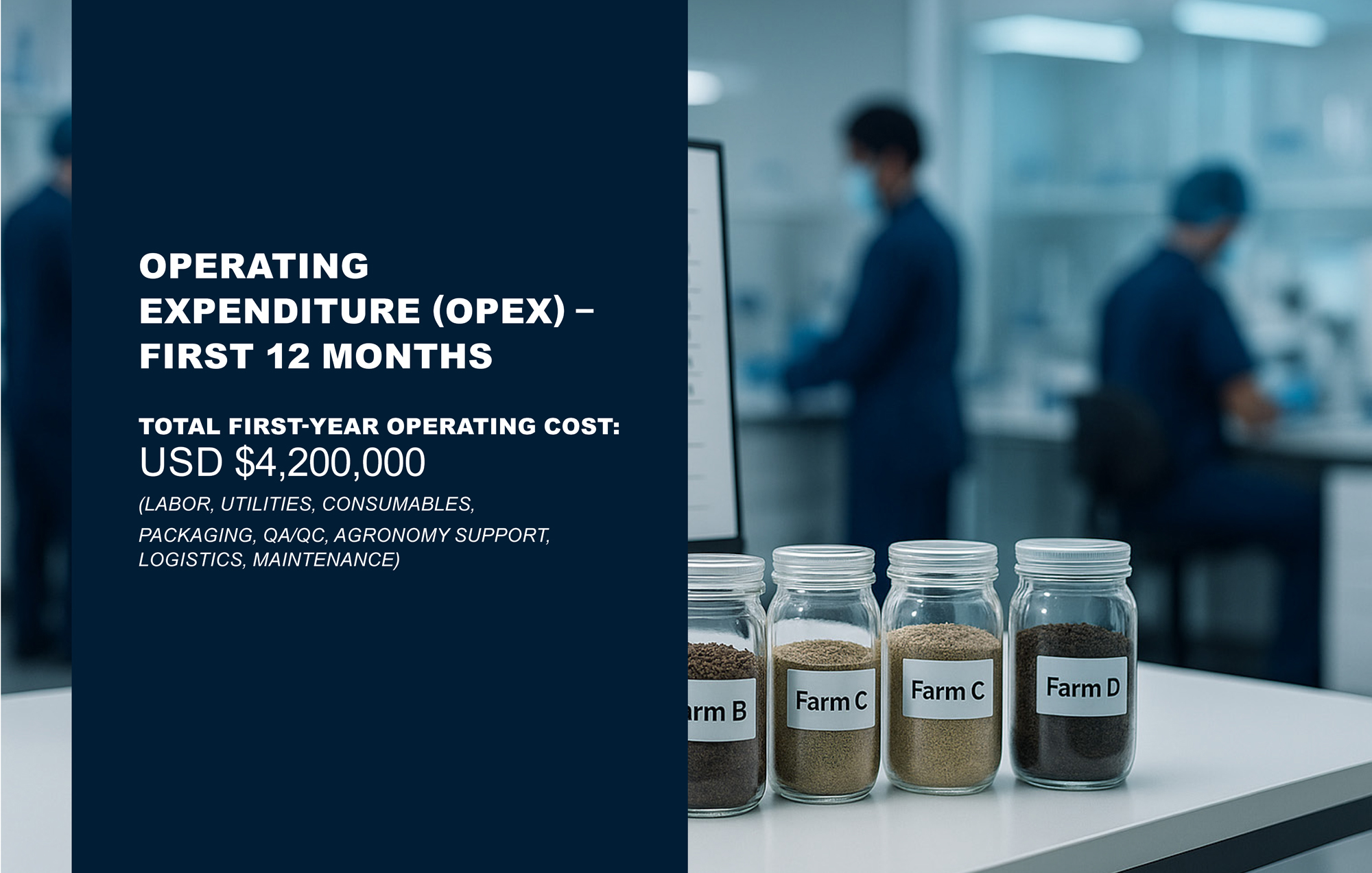 (Labor, utilities, consumables, packaging, QA/QC, agronomy support, logistics, maintenance)