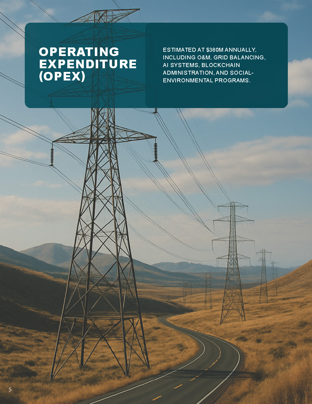 Estimated at $380M annually, including O&M, grid balancing, AI systems, blockchain administration, and social-environmental programs.